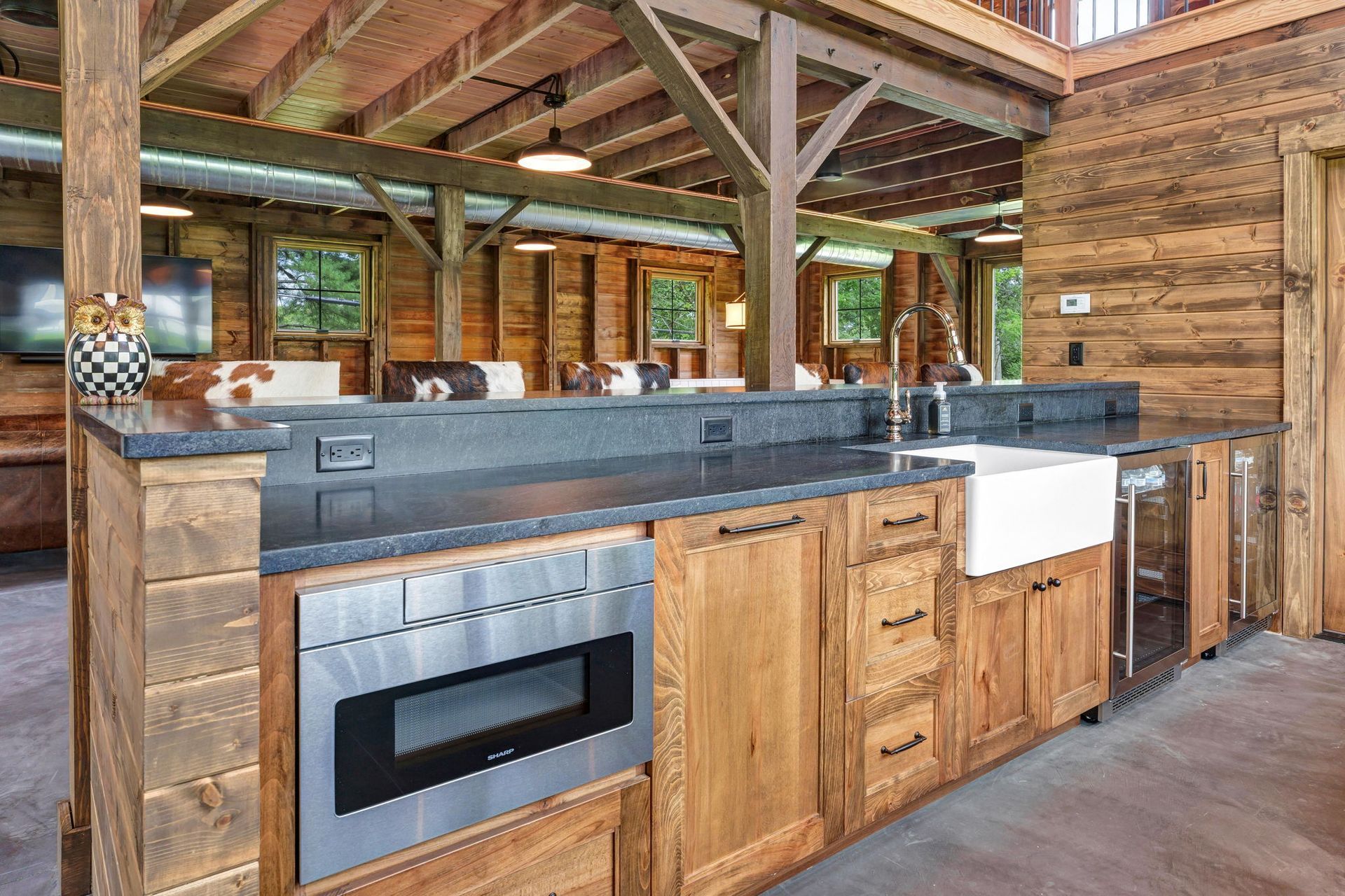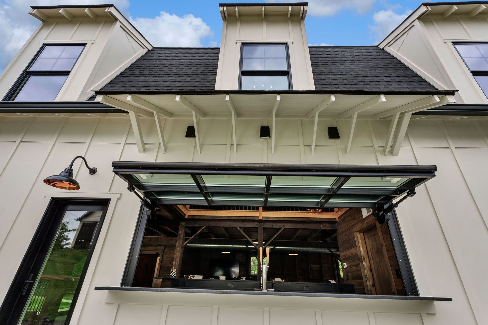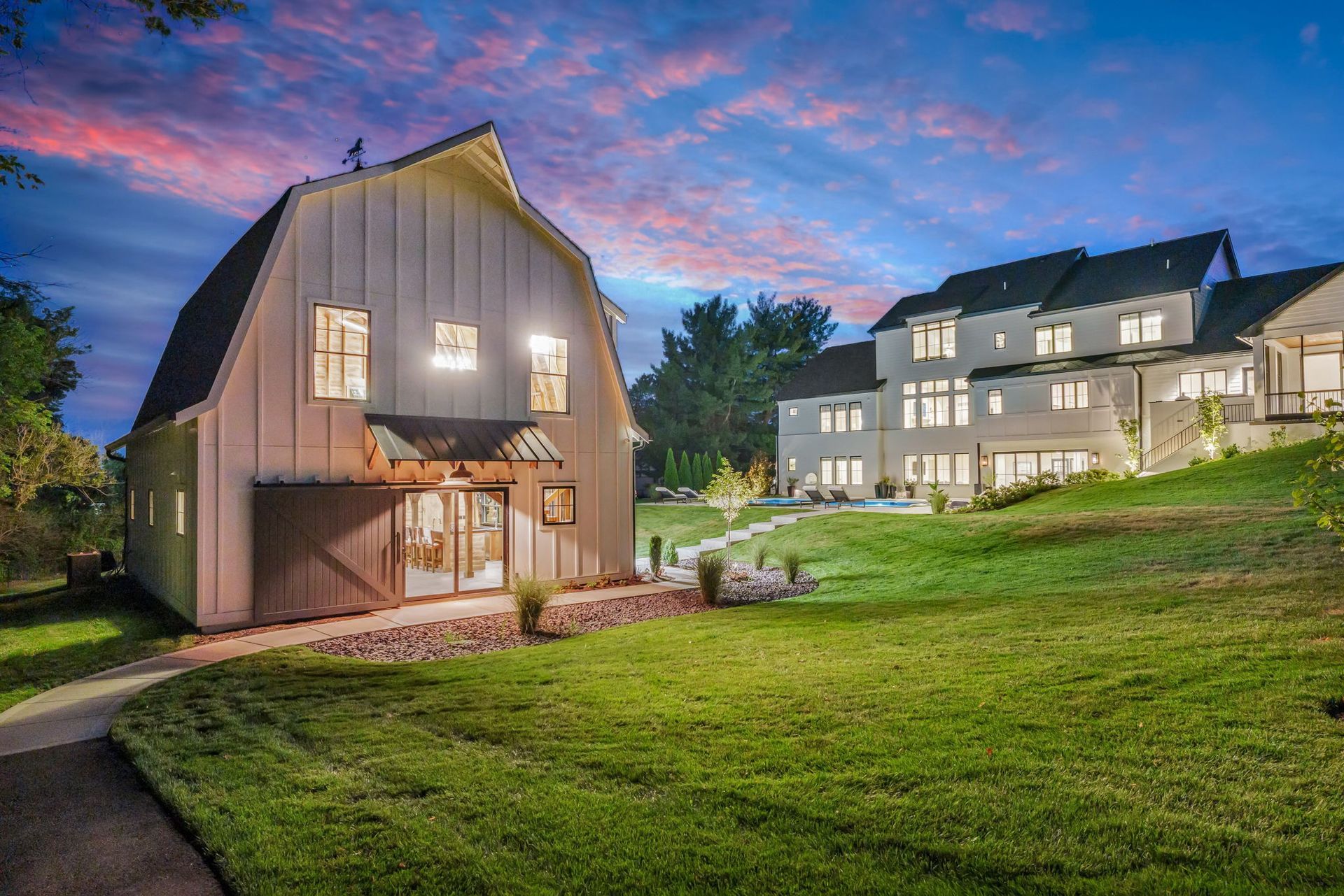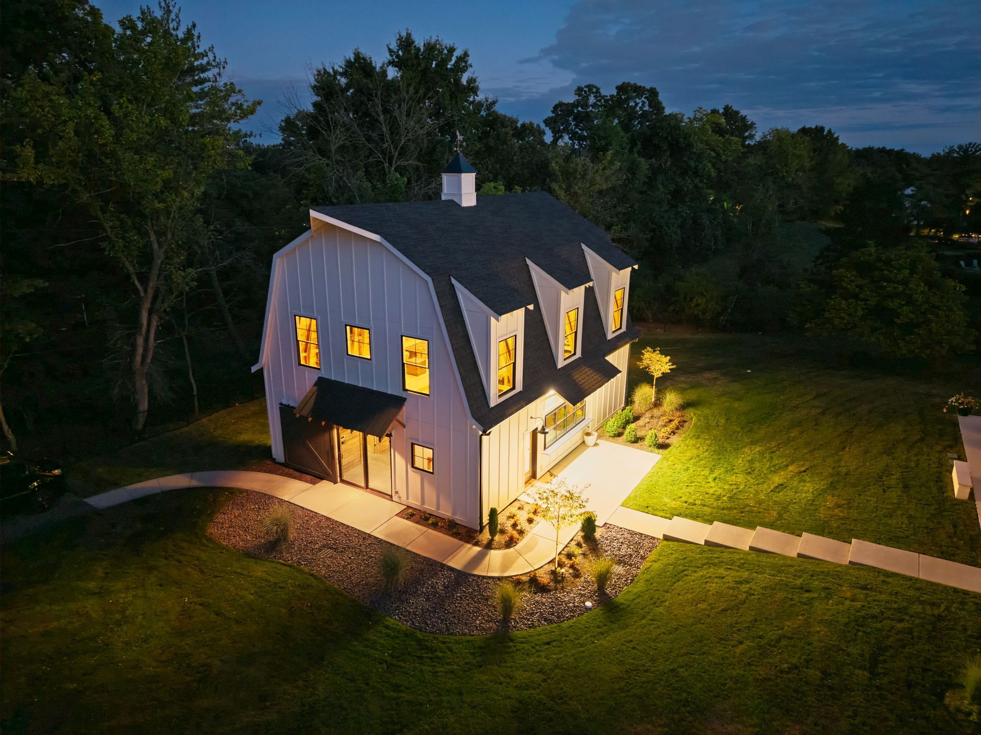 Working closely with our clients, design team, and architects, we transformed the barn into a stunning pool house and entertaining space. The updated design introduced new dormers, James Hardie siding, metal roof accents, and a custom cupola topped with a galloping horse—an homage to its equestrian heritage.