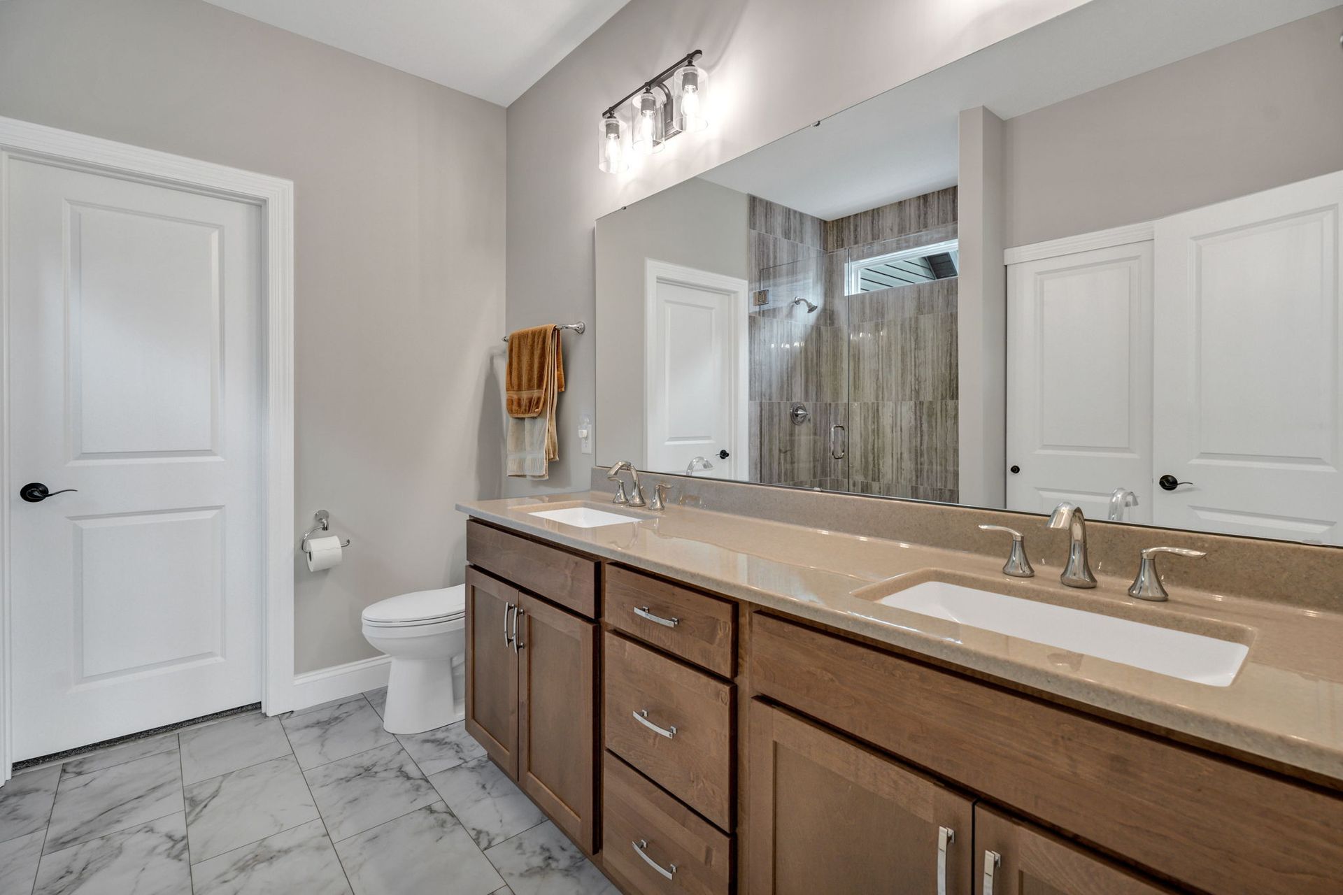 - Master Bath w/ Gleaming Cultured Marble Vanity & Shower Surround