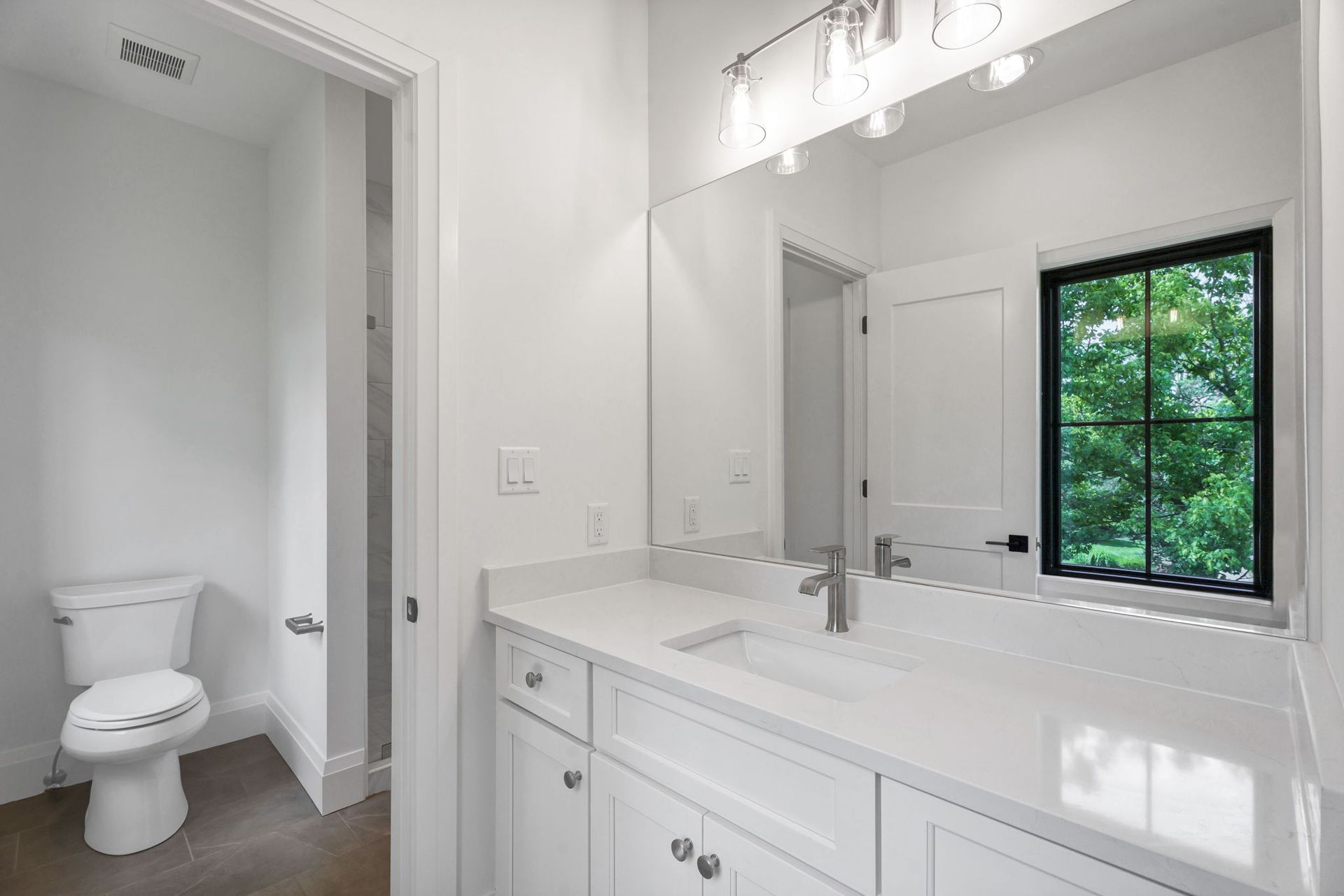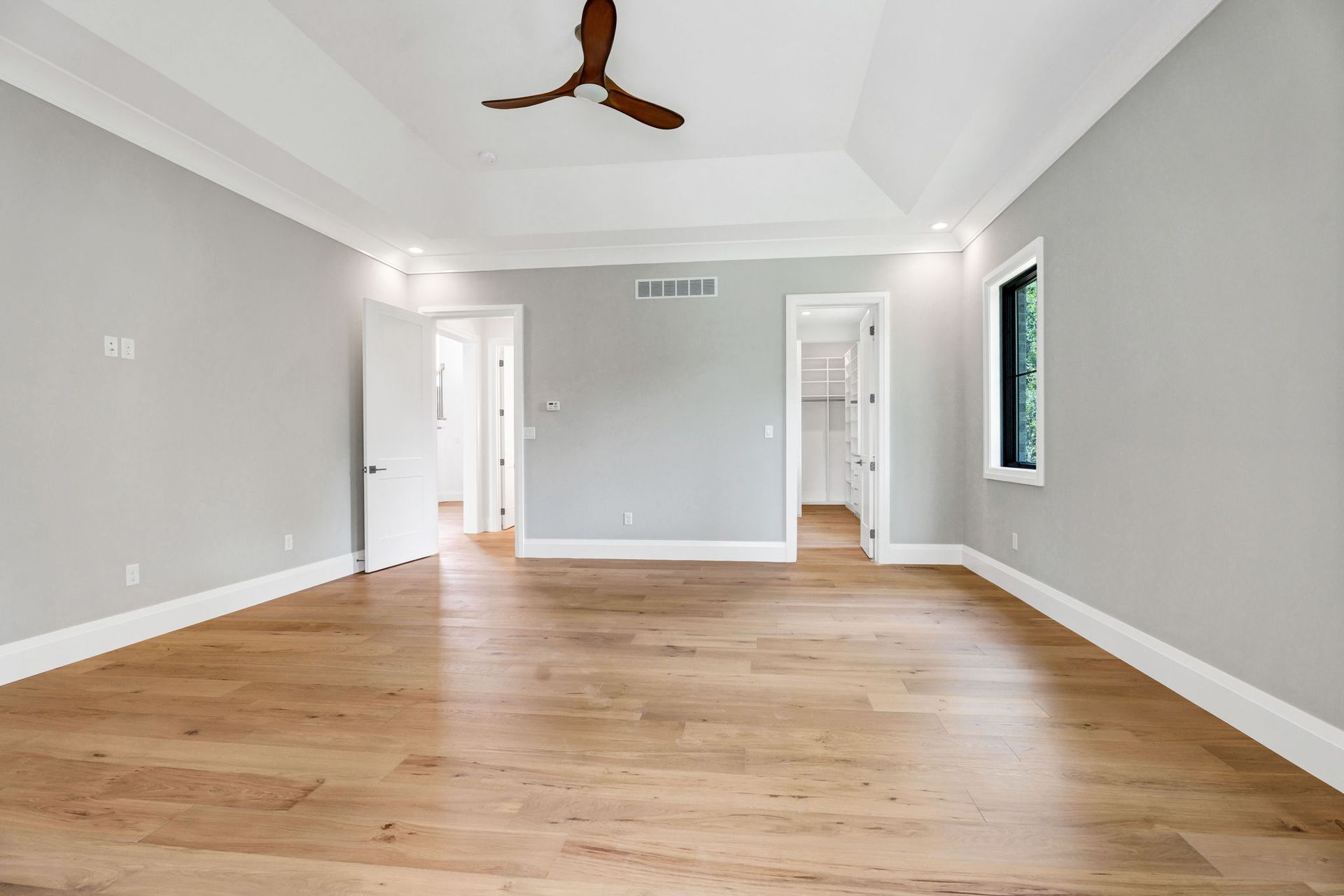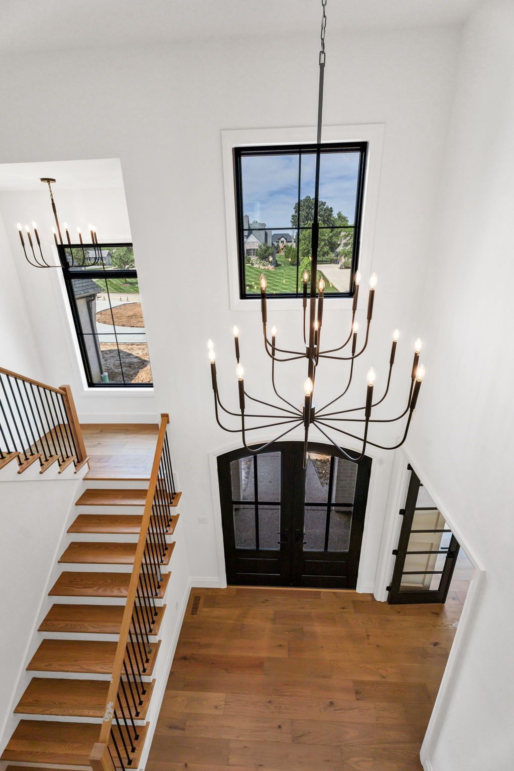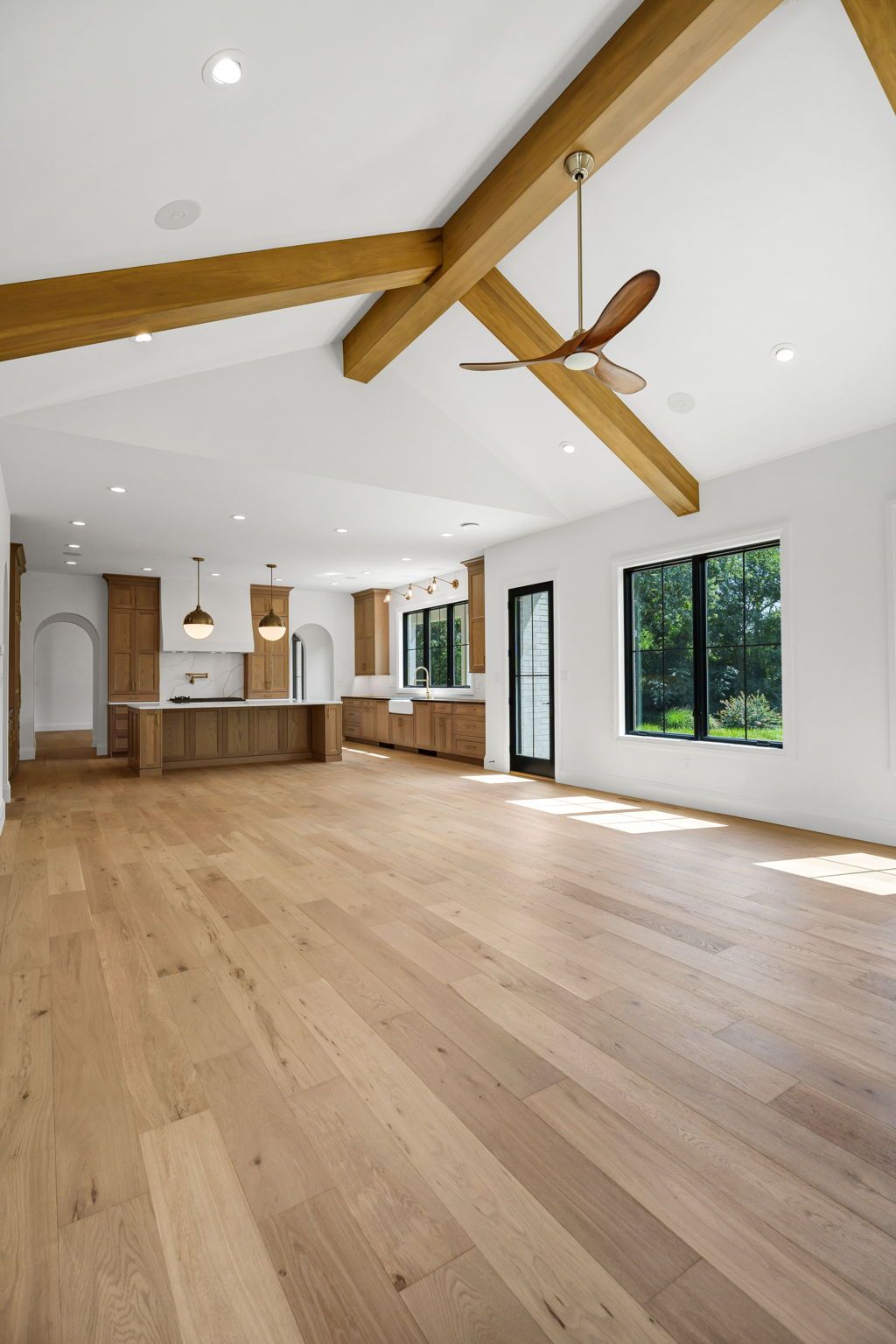The main level pairs elegance with comfort, featuring 10-foot ceilings, wide-plank hardwood floors, and detailed millwork throughout. At its center, a chef-inspired kitchen with top-tier appliances opens to a warm hearth room, while a covered patio with fireplace extends living outdoors to the expansive backyard.