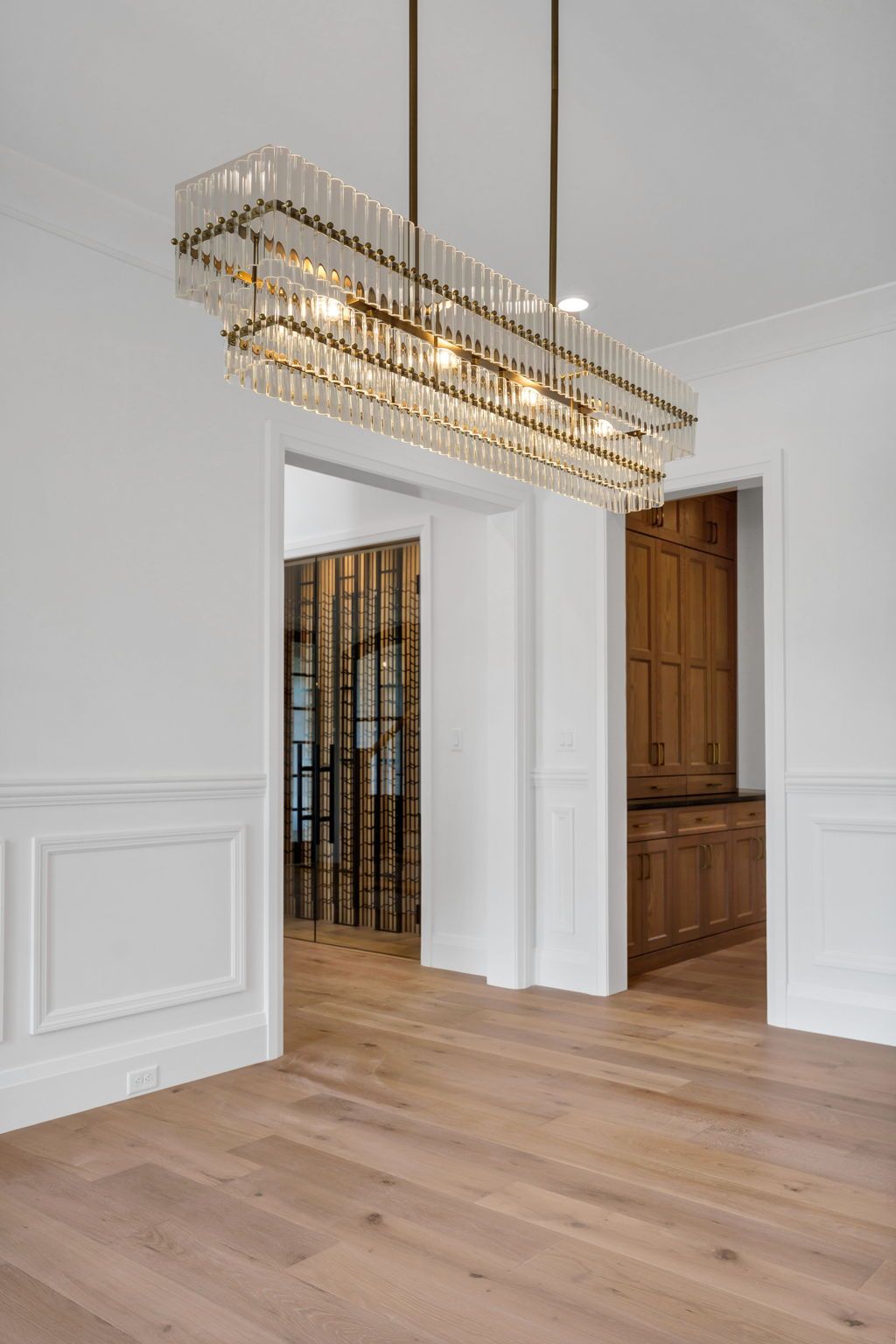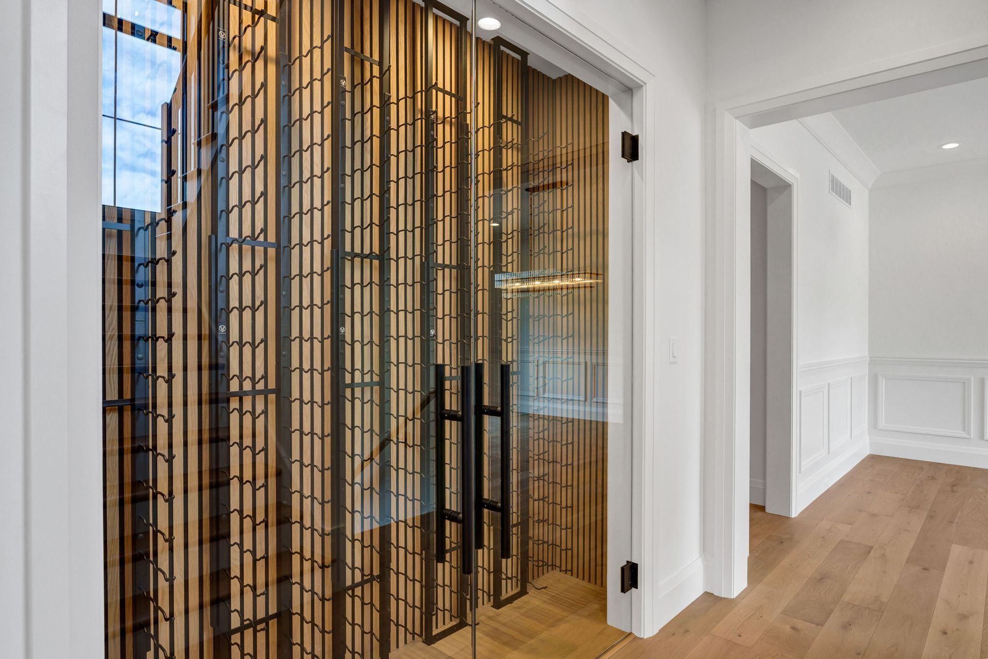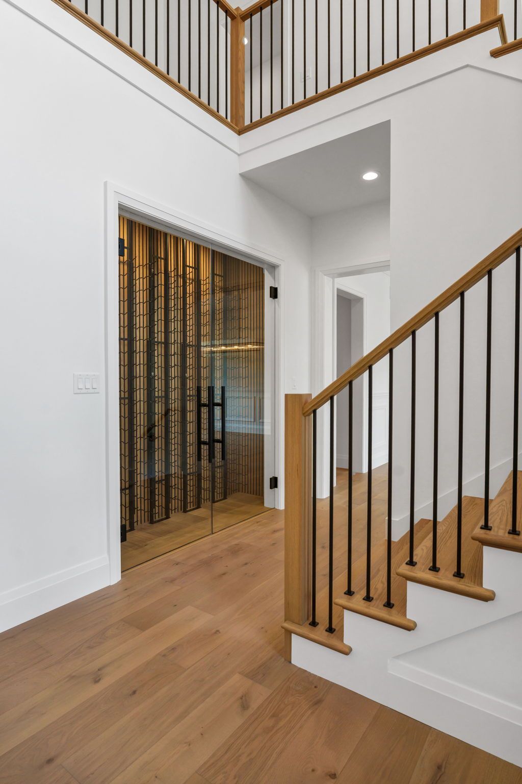 This exceptional transitional-style residence offers over 7,000 square feet of refined living space, designed for both luxury and versatility. The grand two-story foyer makes a dramatic first impression, anchored by a showcase wine cellar and sweeping sight lines to the opulent main-floor primary suite, complete with a spacious walk-in closet and spa-like bath.