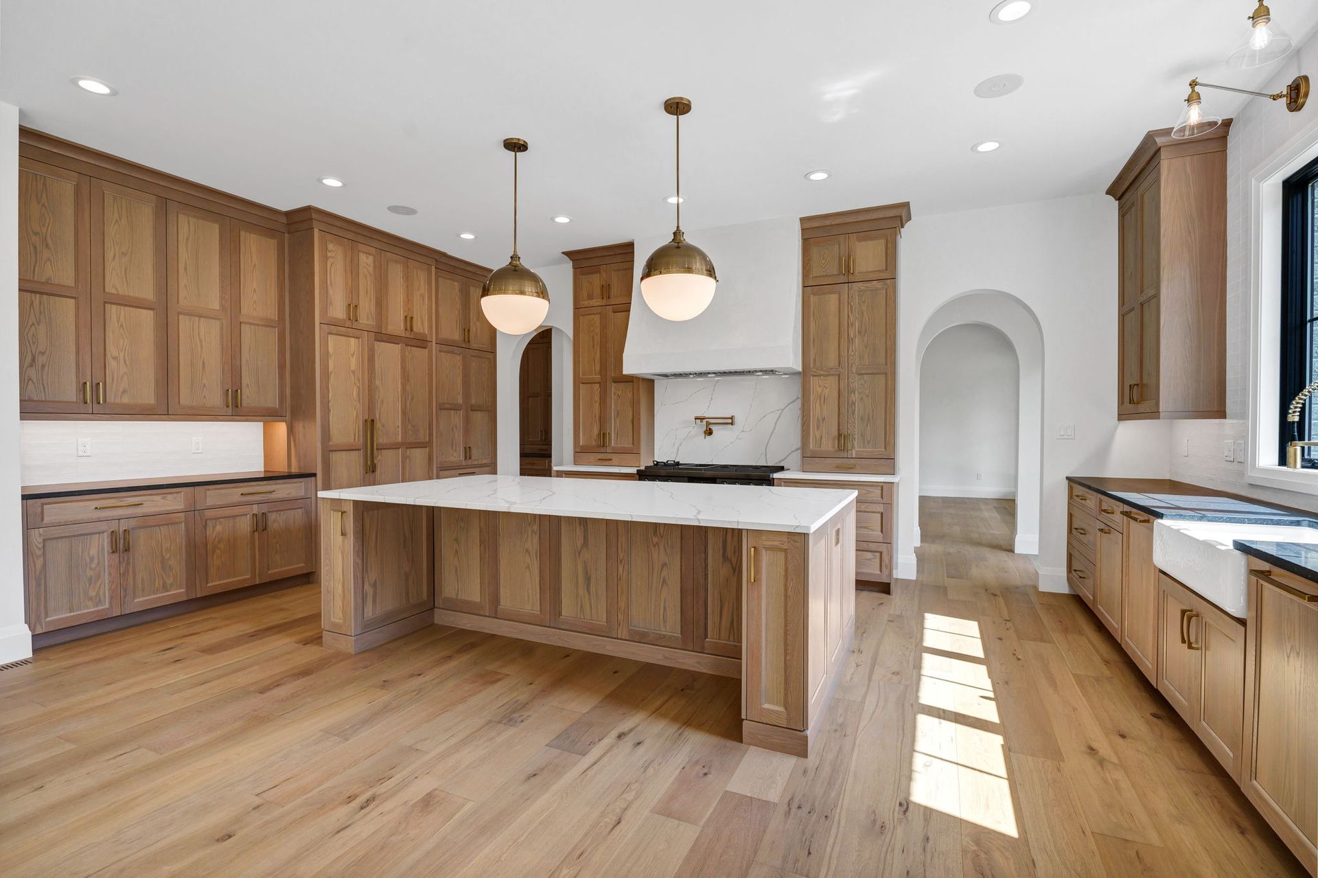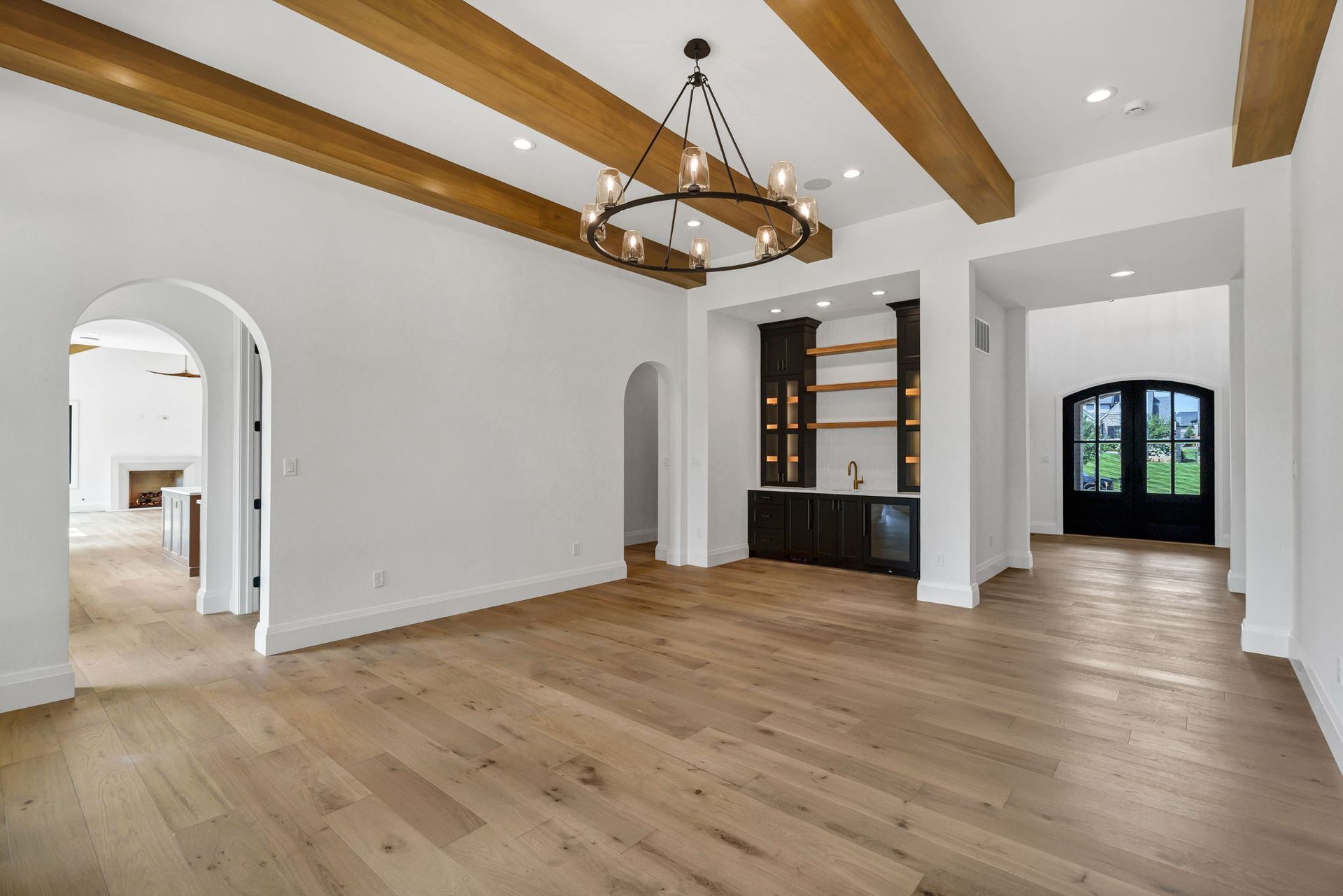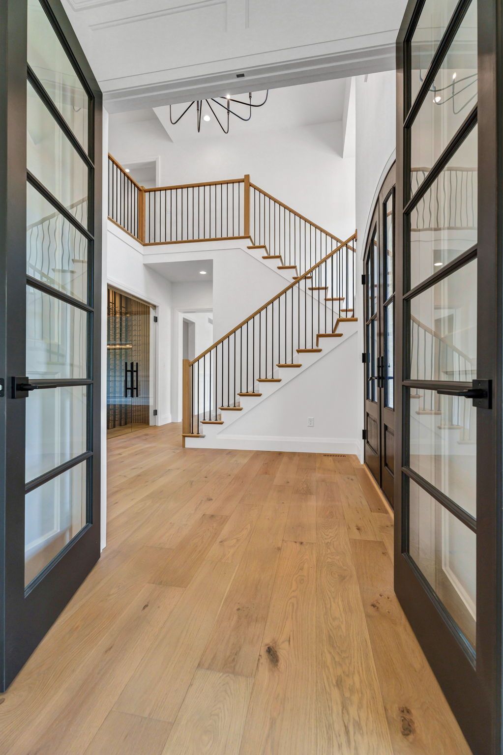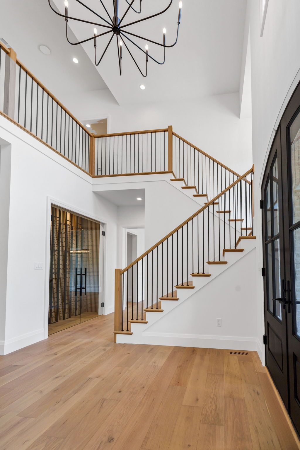 This exceptional transitional-style residence offers over 7,000 square feet of refined living space, designed for both luxury and versatility. The grand two-story foyer makes a dramatic first impression, anchored by a showcase wine cellar and sweeping sight lines to the opulent main-floor primary suite, complete with a spacious walk-in closet and spa-like bath.